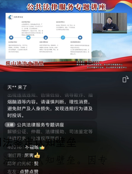 公共法律“云端”开讲,司法鉴定“破壁”出圈 --乐山科信司法鉴定中心亮相法治大讲堂获好评