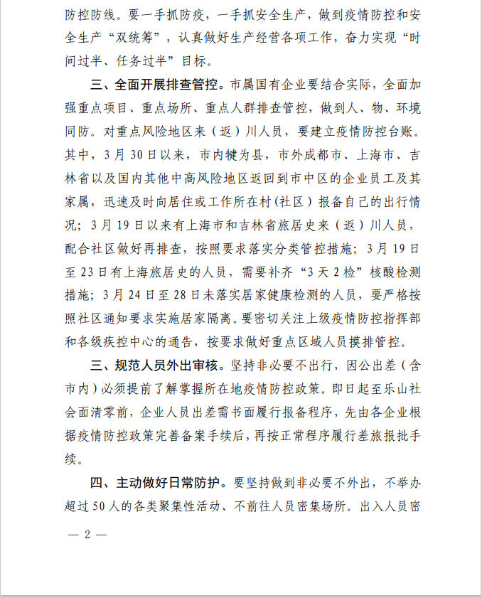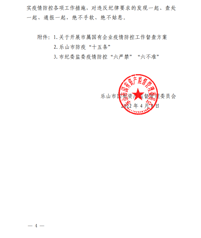 乐山市国有资产监督管理委员会 关于进一步做好疫情防控工作的通知