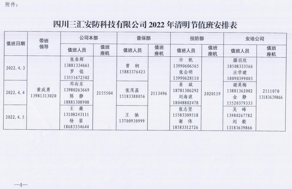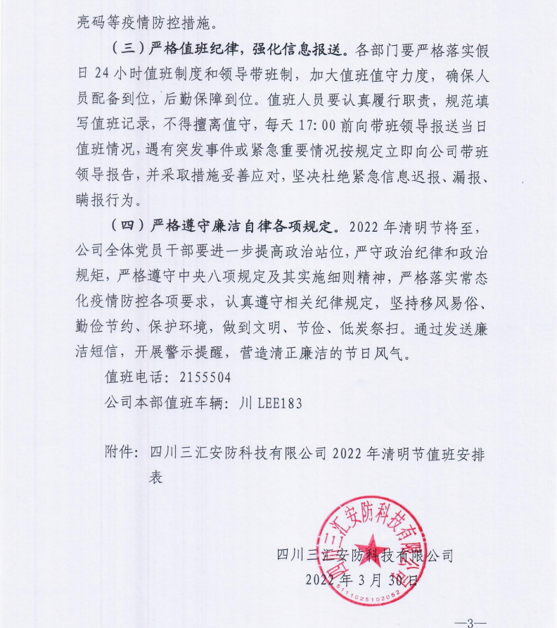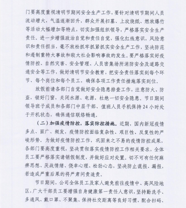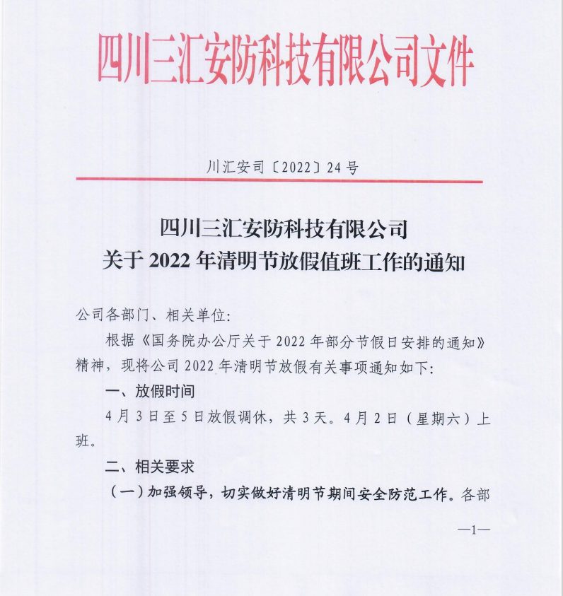 关于清明节放假值班工作的通知
