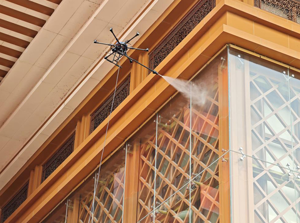 无人机低空清洁幕墙
