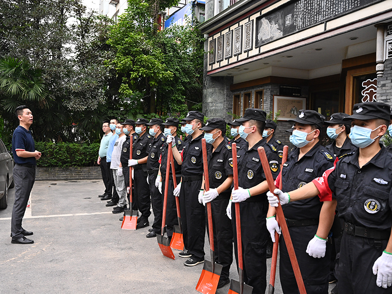 8月21日傍晚,公司第一批次25人在金叶宾馆集结。在现场与国投集团领导汇报了相关工作并领受具体任务后,公司副总经理王军作了简短的动员,希望参与清淤的25名员工要积极发扬保安队伍不怕苦、不怕累、不怕脏的精神,全面展现保安公司的优良作风,高质量完成好此次清淤任务,还嘉州城一个“美丽”。