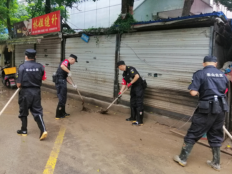 8月21日至22日,根据乐山市国资委和乐山国投集团的统一安排,乐山市保安服务有限责任公司派出40名员工到达受洪灾较为严重的区域,参与街面清淤工作,积极恢复街面本来面貌。