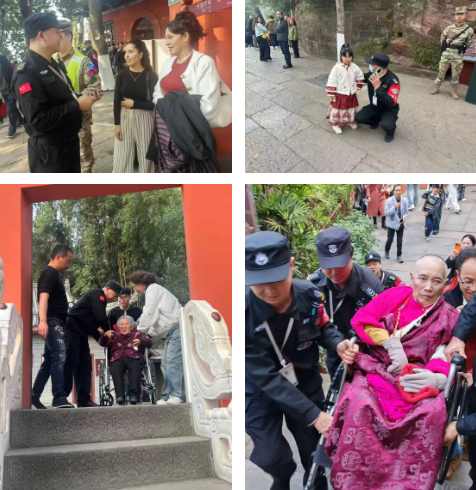 参与志愿服务的旅游卫士、公交卫士统一身着工作服,党员同志佩戴党员徽章,以饱满的热情投入服务工作。大佛景区的旅游卫士聚焦游客出行需求,不仅为外国游客耐心答疑解惑、指引游览路线,还暖心帮助走失儿童寻找亲人,悉心搀扶行动不便的老人、少数民族老人,用点滴行动筑牢景区出行安全防线,让游客在乐山感受节日温暖。