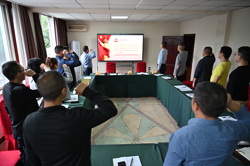 主题党日活动中,党总支书记、董事长黄成勇组织大家观看记录片《会师井冈山》系列第三集星星之火。本部党支部书记、副总经理王军的带领全体党员高举右手重温了入党誓词;铮铮誓言,进一步唤醒了党员们内心深处的初心使命,提振了大家干事创业的信心和激情。