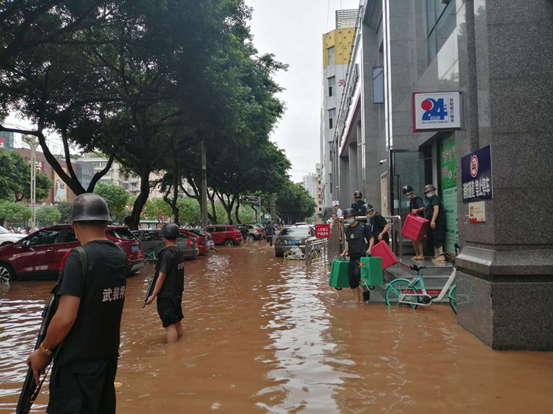 市中区告急、五通桥区告急、夹江告急……8月18日,乐山再现50年一遇的洪水。18日6时,乐山市启动历史以来最高级别的I级防汛应急响应。汛情发生后,乐山市保安服务有限责任公司迅速动作,庚即启动防汛应急预案全力投入抢险。由于指挥得力、预判到位、转移及时、秩序井然,公司整体业务工作未受到任何影响,人员、车辆、枪弹和资金安全。