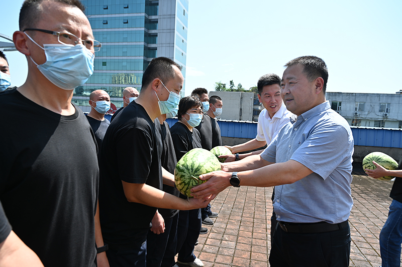 盛夏的七月,骄阳似火,艳阳炙烤着嘉州大地;为关心关爱一线员工的身体健康,7月29日至30日,董事长黄成勇、总经理阳家明、副总经理王军、鄢志远、财务总监赵建斌分别深入基层,看望慰问一线员工,带去公司工会对全体一线员工的关心和关怀,勉励一线员工克服困难,安心工作。