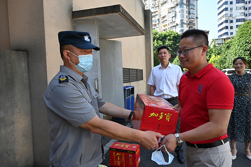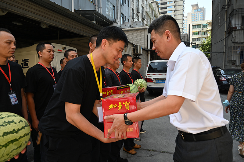 慰问中,董事长黄成勇、总经理阳家明、副总经理王军、鄢志远、财务总监赵建斌,先后深入市建行守押队、市工行守押队、市外资银行守押队、市中国银行守押队、市委安保大队、市政府安保大队,公交卫士大队、技防部值班值守一线,为一线员工带去了防暑降温的慰问品。每到一处,董事长黄成勇、总经理阳家明,都详细了解了各一线队伍针对当前高温高热天气下值班值守,所采取的防暑降温工作措施,希望各队、各点相关负责人一定高度重视高温天气对工作带来的不利影响,时刻关注员工的身体健康状况,积极采取多样化的举措做好防暑降温工作。