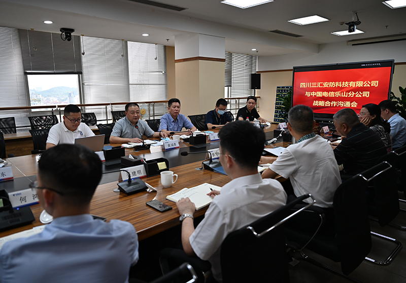 董事长黄成勇介绍了我公司的基本情况、发展历程和下一步转型升级的方向;他说公司将以高新区总部基地项目建设为契机,打造全市乃至全省一流的数字化安防企业。结合公司的定位,未来将在泛安全、智慧安防等多个领域开展新业务。中国电信作为央企,具有强大的研发团队和技术支撑,希望能结合电信的平台优势,以及“5G+云+应用”与传统产业深度融合,为行业用户提供多样化的云网融合解决方案,赋能我公司数字化转型和高质量发展。