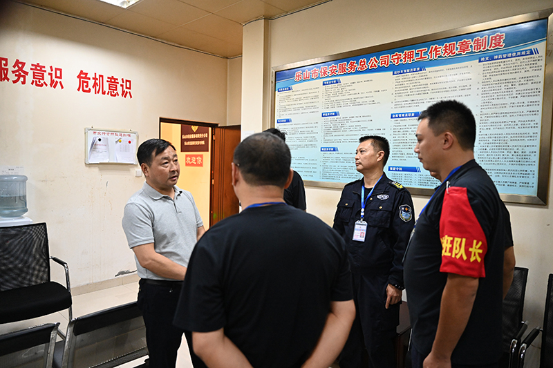 随后,黄董事长黄成勇一行来到乐山商行、交通银行守押队,详细了解了守押队节日期间工作开展情况,实地检查了守押队执勤值守情况以及队伍的装备配备情况,他要求,每位守押队员要清醒认识到自身担负的职责和任务,要外树形象,内强素质,维护好自身以及公司形象,要不断提升自身的能力素质,要结合队伍实际情况,把防范化解重大风险工作做细做实,深入摸排,强化应对,确保一线守押队员思想稳定和队伍安全,以实际行动赢得服务对象和社会各界的赞誉。