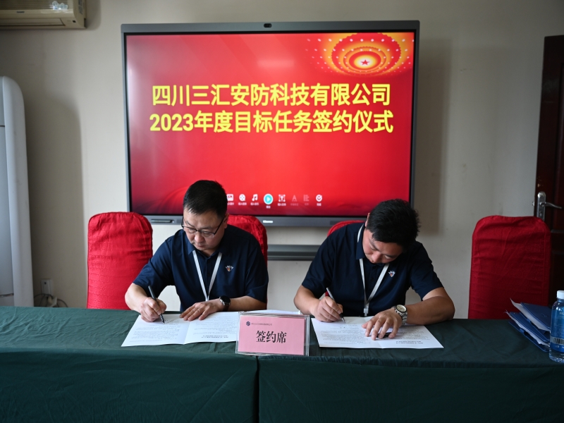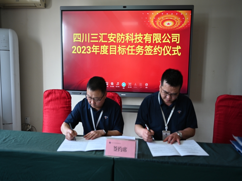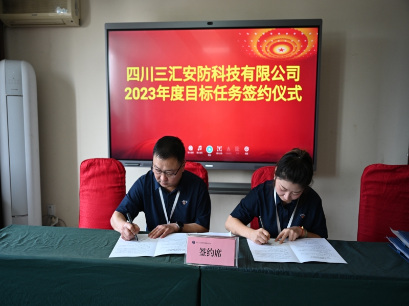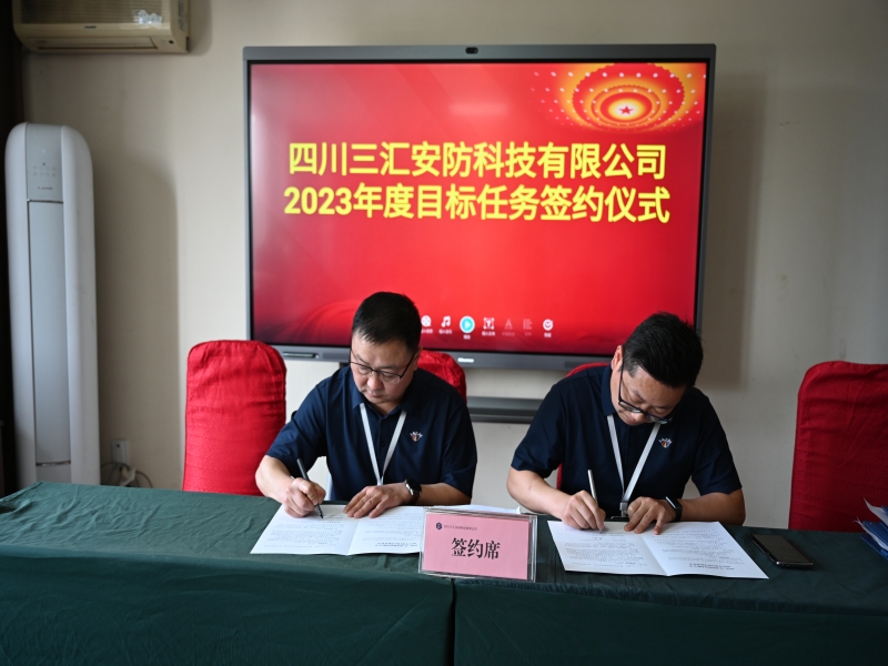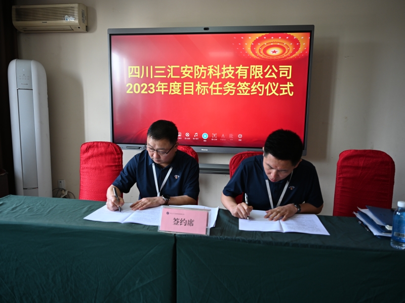 随后,党总支书记、董事长黄成勇与部分部门及分子公司代表签署《2023 年三汇安防公司党建工作目标责任书》《2023年三汇安防公司党风廉政建设目标责任书》《2023年三汇安防公司经营业绩目标责任书》。
