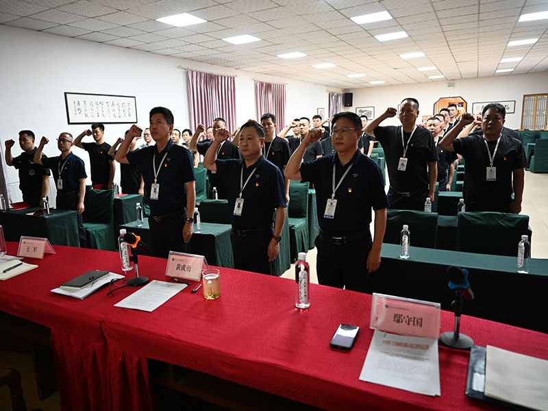 大会在雄壮的国歌声中拉开帷幕,公司党总支书记、董事长黄成勇带领全体党员高举右手,重温了入党誓词。