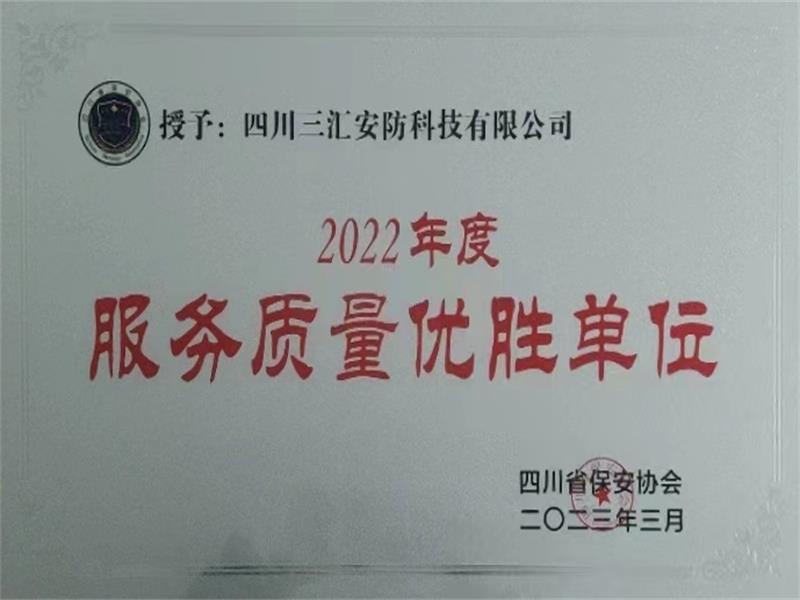 四川三汇安防科技有限公司荣获“2022年度服务质量优胜单位”荣誉称号