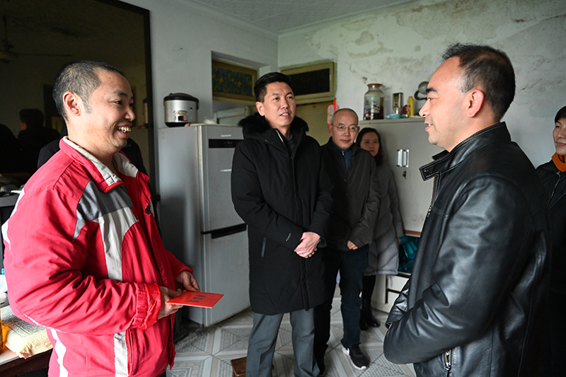 12月15日上午,省总工会经济技术部副部长张海涛、省总工会经济技术部二级调研员朱娟,以及市总工会三级调研员张雷、市总工会经保部部长王甫开一行来到我公司困难职工覃明贵家中看望慰问,并送上慰问品和慰问金,副总经理、工会主席王军陪同慰问。
