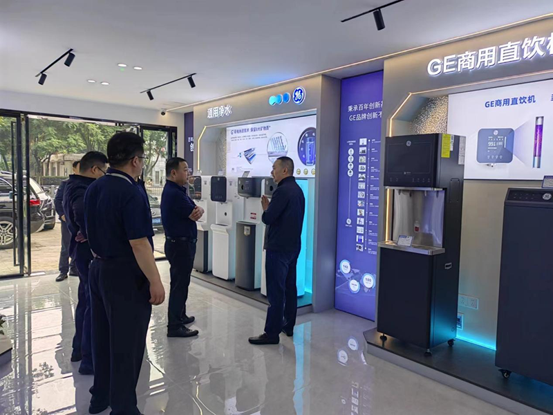 在调研中,黄成勇董事长一行首先参观了综合服务中心内通用净水业务板块,对产品和业务进行了深度的了解。安保分公司副经理王驰详细介绍了智慧城市展示板块运营及消防、安保装备器械板块销售等情况。