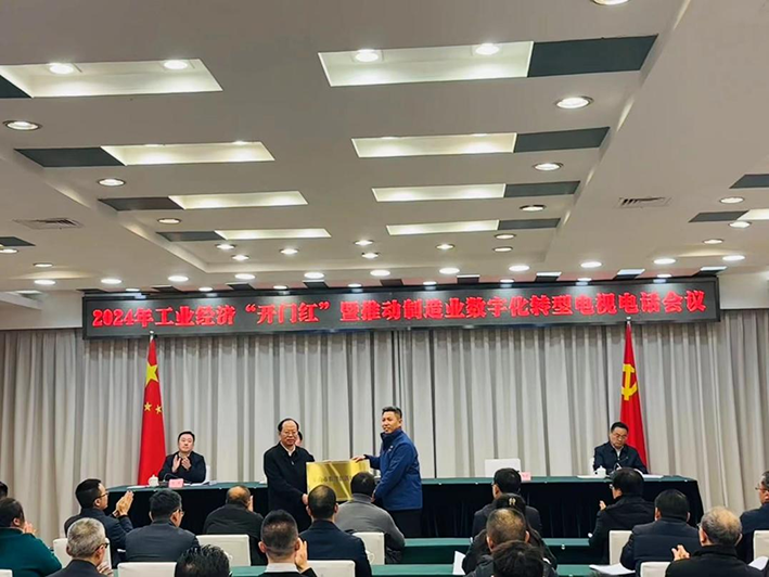公司领导参加会议并代表公司领取“乐山市数智创新研究院”牌匾。